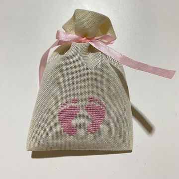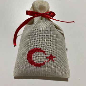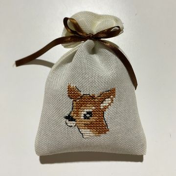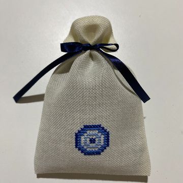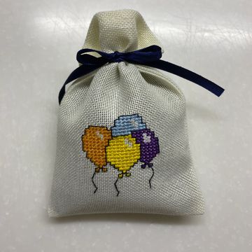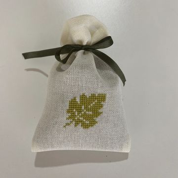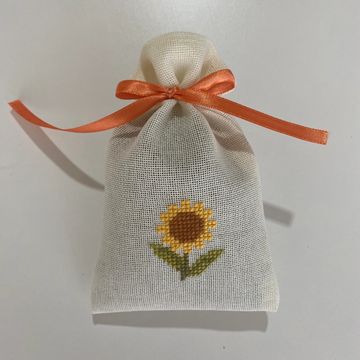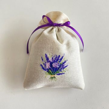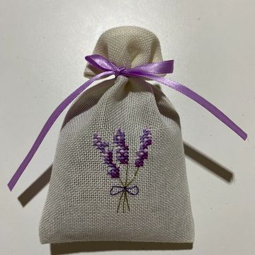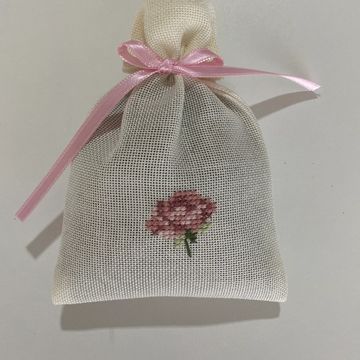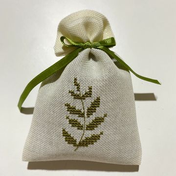 Tamamı etamin işlemeli, el işi lavanta kesesi